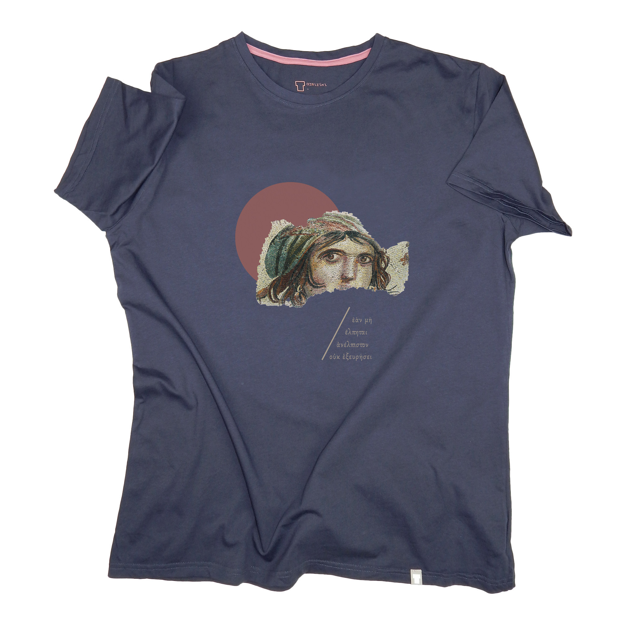 it is attributed to the pre-Socratic, Ionian philosopher from Ephesus, Heraclitus (c. 540 — 480 BC), where it is stated that even though we do not control our luck, it is important to believe in ourselves, since with faith almost everything is possible. The drawing depicts the “Gypsy Girl” (2nd c. AD), a Hellenistic mosaic from the ancient city of Zeugma on the Euphrates river. It probably depicts either Gaia, the goddess of the Earth, or a Maenad, a nymph-chorister of the god Dionysus.