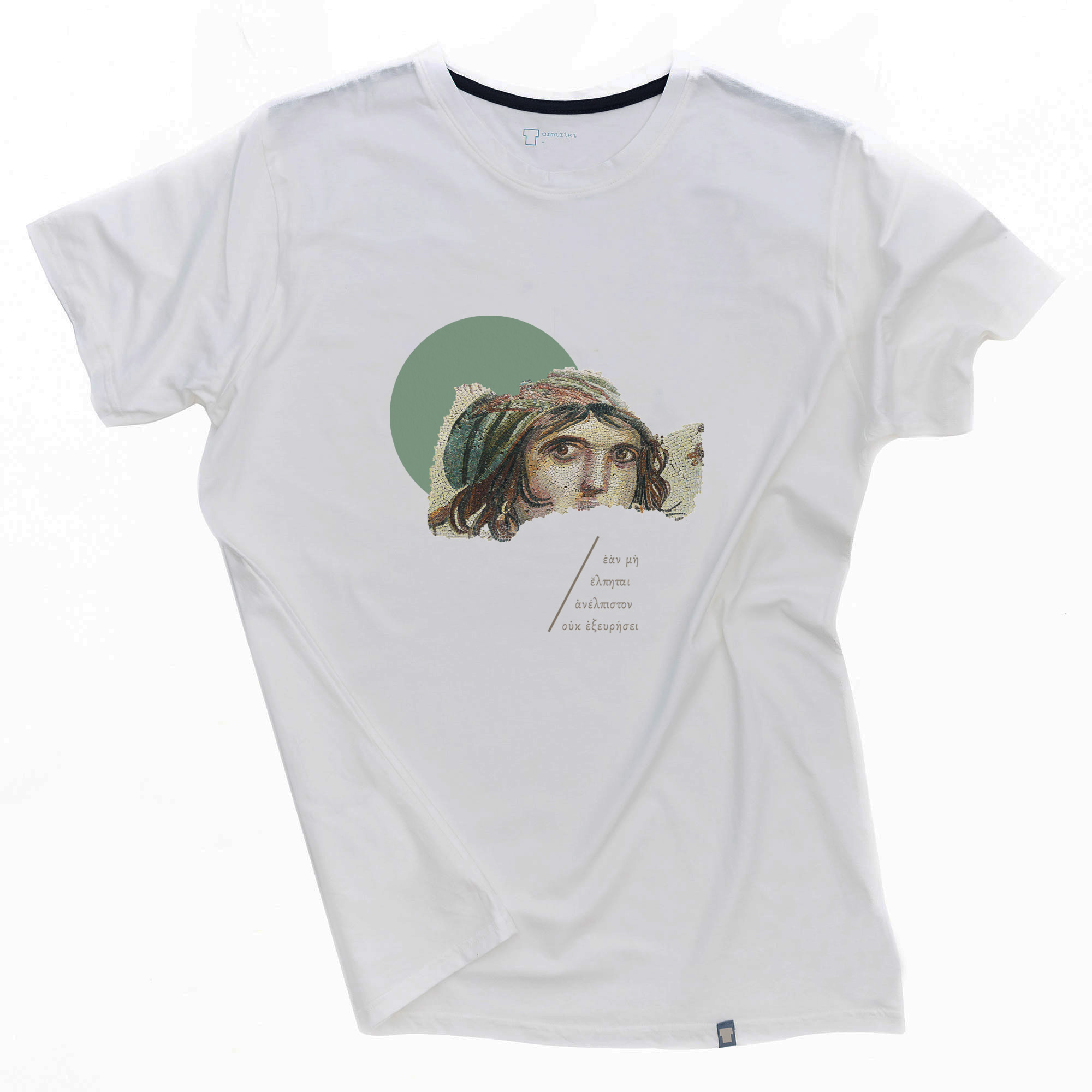 it is attributed to the pre-Socratic, Ionian philosopher from Ephesus, Heraclitus (c. 540 — 480 BC), where it is stated that even though we do not control our luck, it is important to believe in ourselves, since with faith almost everything is possible. The drawing depicts the “Gypsy Girl” (2nd c. AD), a Hellenistic mosaic from the ancient city of Zeugma on the Euphrates river. It probably depicts either Gaia, the goddess of the Earth, or a Maenad, a nymph-chorister of the god Dionysus.